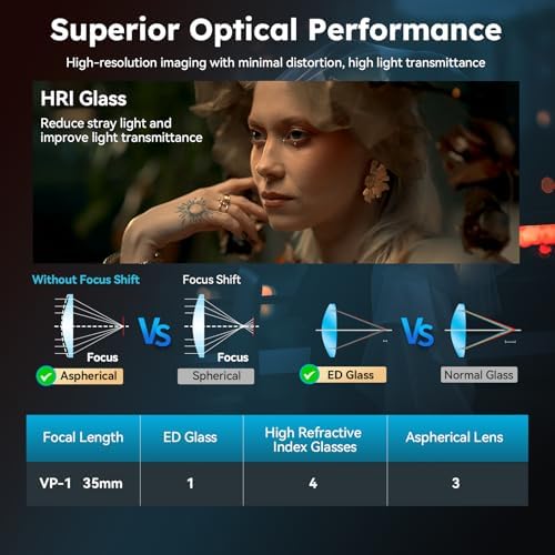– **Exceptional Optical Quality:** The SIRUI VP-1 features advanced optical engineering with a fast T1.4 aperture, allowing for outstanding low-light performance and beautiful bokeh, making it ideal for both narrative and documentary filmmaking.